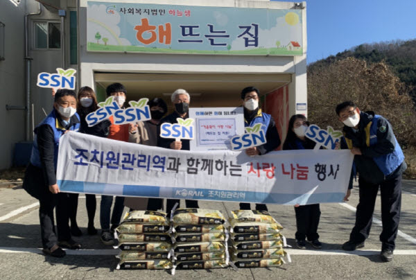 또한, 1일 한국철도 대전충청본부 조치원관리역(역장 김용갑)은 세종시 전의면에 위치한 장애인 복지시설 해뜨는집(원장 김광용)을 방문해 50만원 상당의 쌀 전달식과 시설 안팎의 정비 봉사활동을 하였다.