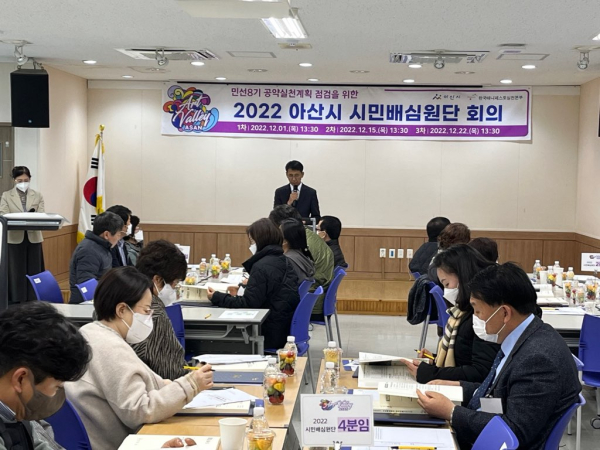 [충청뉴스 박동혁 기자] 충남 아산시는 시민의 눈높이에서 민선 8기 공약 실천 계획서를 평가하고, 조정이 필요한 공약을 심의하기 위해 ‘2022년 시민배심원제’를 운영한다고 2일 밝혔다.