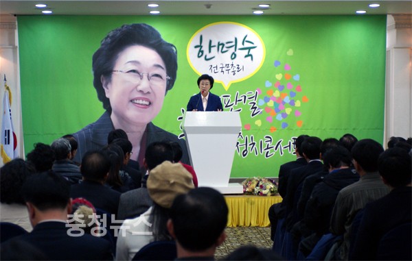 그 정점에 한 前 총리”가 헌신과 비전을 갖고, 이끌어줄것이라 의심치 않는다“고 극찬했다. 이어서 박범계 대전시당위원장은 “무서운 검찰 조직과 두 번이나 싸워 이겨낸 한 前 총리께 우리 당의 운명을 한번 맡겨야하지 않겠냐”며 “한 前 총리, 박병석 국회의원, 선병렬․이서령․허태정․박영순 지역위원장들과 제가 대전에 민주정부의 초석을 쌓겠다”고 다짐했다.