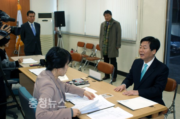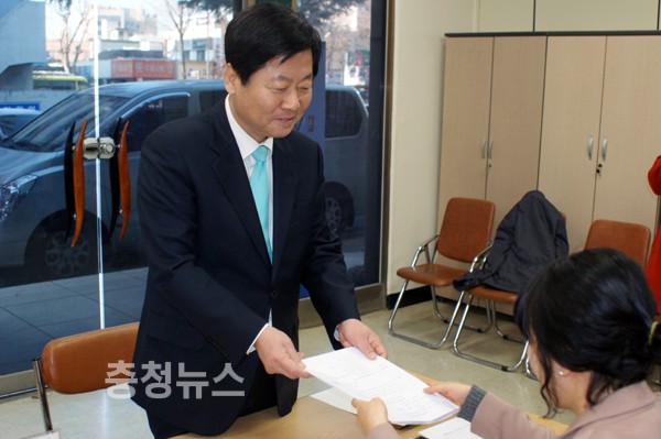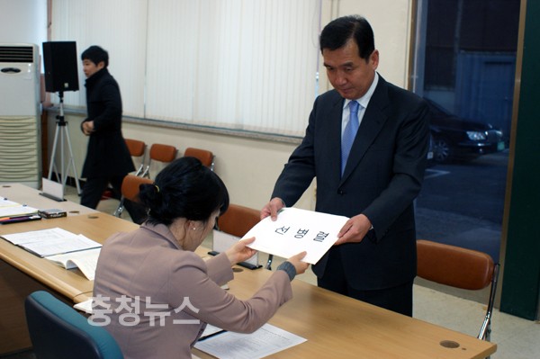 ▲ 선병렬 위원장이 서류를 접수하고 있다.