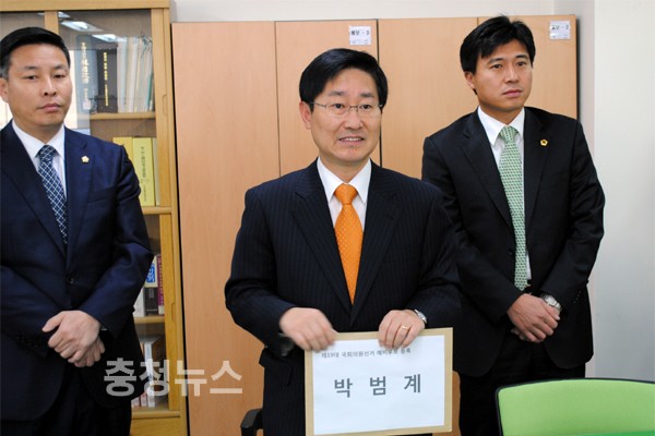 ▲ 박범계 대전시당위원장의 서류 접수에 김종천 시의원과 전문학 구의원이 함께 왔다.