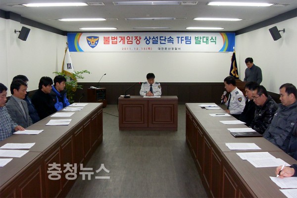 대전둔산경찰서(서장 이병환)은 지난 15일 경찰서 2층 소회의실에서 불법게임장 집중 단속을 위한 상설단속 T/F팀 발대식을 가졌다.