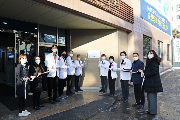 이에 병원은 지난 14일 건강증진센터 입구에서 박상흠 순천향대천안병원장, 백무준 연구부원장, 권준택 IRB 위원장, 길효욱 첨단조직재생임상연구지원센터장 등이 참석한 가운데 IRB 인증 현판식을 개최했다.
