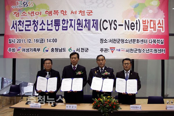 한편, 군은 16일 1388동영상, 축하공연, 필수연계기관 협약서 체결, 1388지원단 대표 위촉장 전달 등으로 이루어진 서천군 청소년통합지원체계(CYS)발대식을 갖고 활동에 들어갔다.