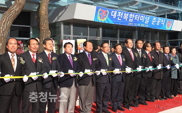 16일 터미널 광장에서는 염홍철 대전시장, 권선택·임영호·김창수 국회의원, 한현택 동구청장, 황인호 동구의회 의장, 동구 지역 시·구의원을 비롯해 지역 주민 등 1000여 명이 참석한 가운데 대전복합터미널 준공식이 진행됐다.
