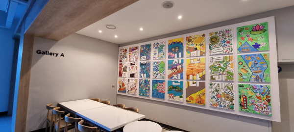 신규 공무원들이 그린 ‘아산시 비전 아트워크’ 구내식당에 전시