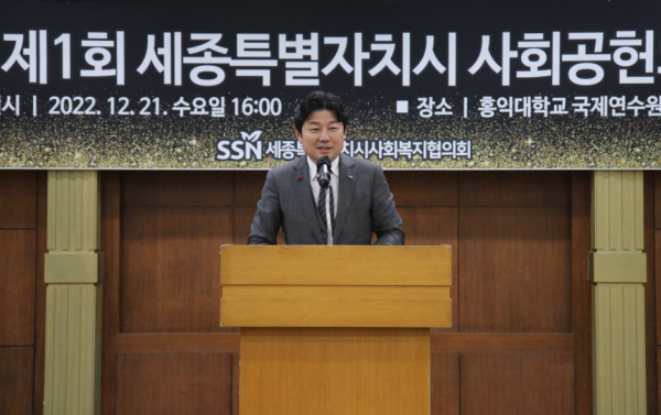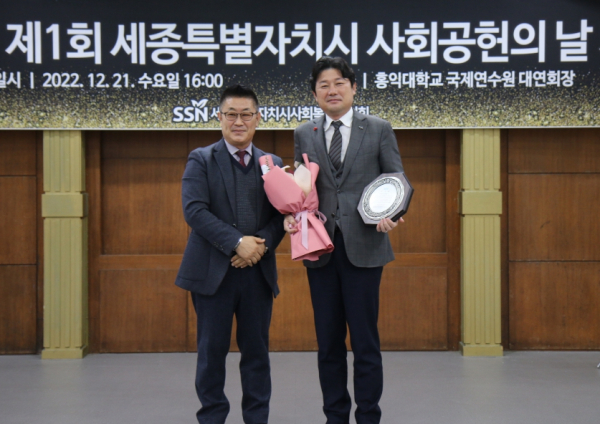[충청뉴스 최형순 기자] 세종특별자치시사회복지협의회(이하 협의회, 회장 김부유)는 21일 홍익대학교 국제연수원 대연회장에서 '제1회 세종특별자치시 사회공헌의 날 기념행사'를 개최했다.