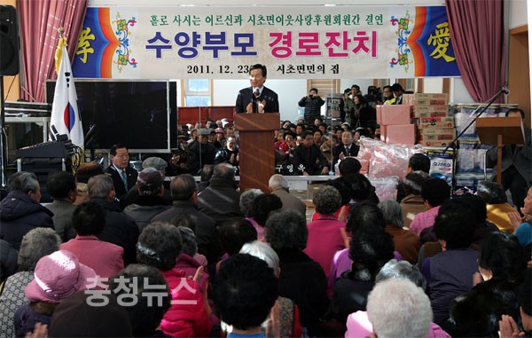 한편, 시초면 노인인구 641명 중 총 229명이 독거노인으로, 올해로 3회째를 맞는 수양부모 경로잔치에는 총 80명의 수양부모가 시초면이웃사랑후원회와 결연을 맺었다.