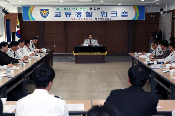 대전지방경찰청(청장 이상원)은 23일 6층 대회의실에서 지방청 경비교통과장 및 일선서 경비교통과장·계장, 직원 60명이 참석한 가운데 국민을 우선하고 현장을 존중하는 교통경찰 워크숍을 개최했다.