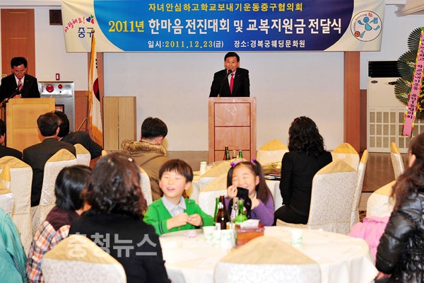 대전 중구(구청장 박용갑)와 자녀안심하고학교보내기운동 중구협의회(회장 박희정)는 지난 23일 경복궁 웨딩문화원에서 150여 명의 회원이 참석한 가운데 청소년 선도·보호활동 평가와 2012년 사업추진을 위한 전진대회를 개최했다.