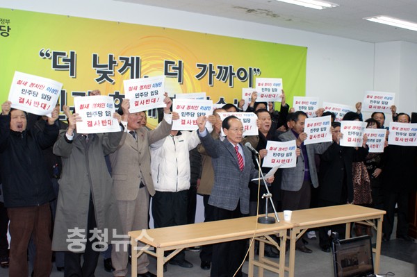 대전시당서 입당 반대 기자회견 갖고, 낙선운동 불사 경고