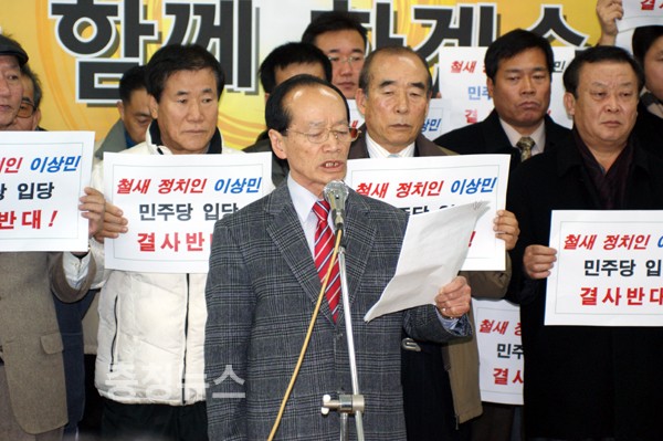 민주통합당 유성지역위원회 전‧현직 당직자 90여명이 26일 대전시당 당사에서 기자회견을 갖고, 자유선진당 이상민 국회의원이 입당할 경우 낙선운동으로 선진당과 연대해 처참하게 침몰시킬 것이라고 강력 경고했다.