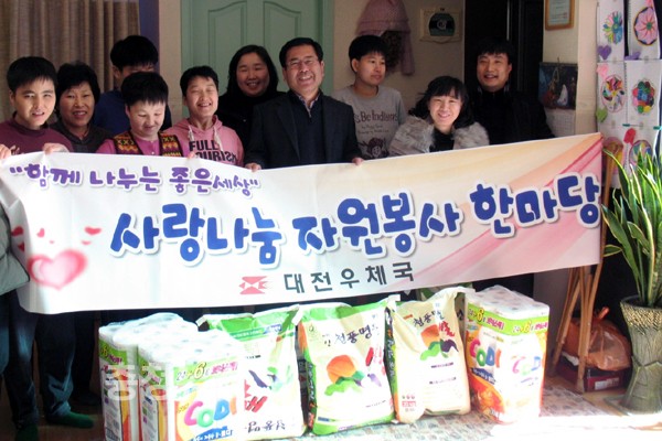 대전우체국(국장 정연석)은 26일 연말연시를 맞아 대전시 동구 신상동에 위치한 한우리쉼터(원장 서선석)에 ‘사랑나눔 기부활동’을 펼쳤다.