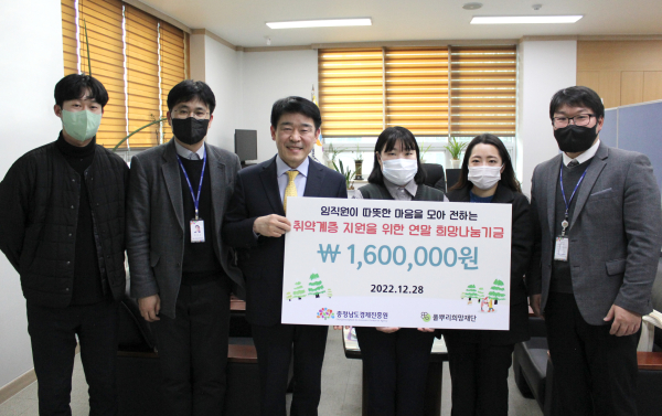 [충청뉴스 박동혁 기자] 충남경제진흥원은 지난 28일 취약계층 지원을 위해 풀뿌리희망재단에 직원들이 십시일반 모은 기부금을 전달했다고 밝혔다.