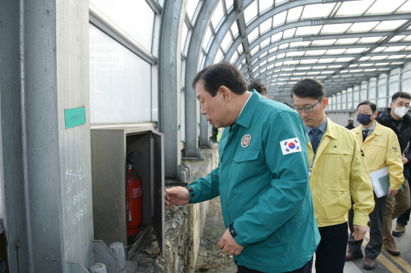 이날 최 시장은 방음터널 내 시공 소재와 화재 취약요소, 피난 장애요소 등을 직접 살피고, 강화유리를 파괴할 수 있는 장비비치와 비상탈출로 표시 등 피난 동선을 확보할 것을 주문했다.