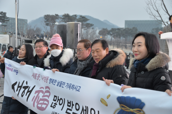 최민호 시장은 “새해를 맞이한 오늘 우리시는 ‘세종이 미래다’라는 새로운 옷을 입고 풍요와 품격의 미래를 앞당기게 될 것”이라며 “시민 여러분들께서도 변화와 혁신의 원년이 될 오늘의 시작을 기억해주시고 계묘년 새해 더욱 건강하고 행복하시길 기원한다”라고 말했다.