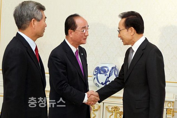 마지막으로 심 대표는 자유선진당이 가지는 지역의 대표성과 역사성을 들면서 명백한 국정운영의 한 축으로서의 역할을 강조했고, 이 대통령 역시 큰 축으로서의 자유선진당의 역할에 대해 공감과 기대를 표시했다.