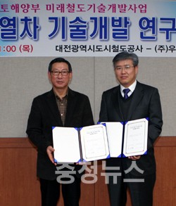 대전도시철도공사(사장 김창환)는 29일 국내 최대 철도차량산업 전문기업인 (주)우진산전과 ‘초고속 추진 및 전력 시스템 기술 개발’ 과제에 대한 연구용역 계약식을 가졌다.