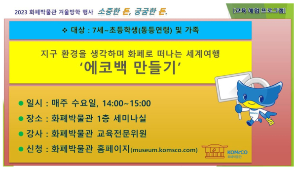 1월20일까지 지구 환경을 생각하는 에코백 만들기 및 화폐 역사 교육