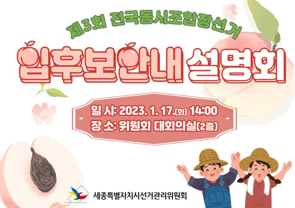 - 17일 오후 2시부터 세종시선관위 2층 대회의실에서 입후보 안내 설명회 개최