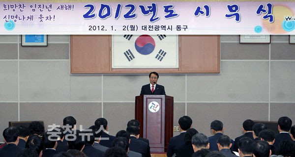 대전 동구(구청장 한현택)는 2일 오전 9시 구청 대회의실에서 한현택 구청장을 비롯한 간부 공무원 등 200여명이 참석한 가운데 2012년 시무식을 개최했다.