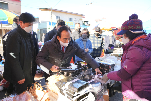특히 물가 안정 대책 마련 등 침체한 전통시장을 살리기 위한 지속적인 노력과 아낌없는 지원을 약속하며 과일, 식료품 등을 구입해 취약계층 시설에 전달하기로 했다.