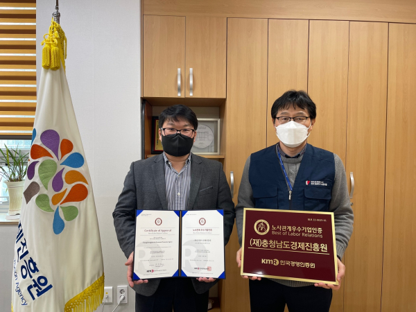 [충청뉴스 박동혁 기자] 충남경제진흥원(이하 진흥원)은 노사관계 우수성을 인정받아 한국경영인증원으로부터 ‘노사관계우수기업 인증’을 획득했다고 20일 밝혔다.