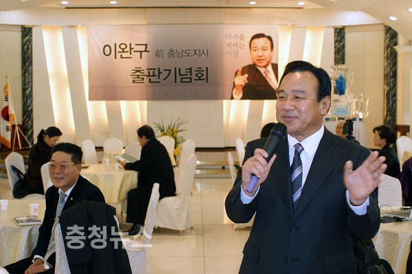 한나라당 이완구 前 충남도지사가 5일 만년동 VIP웨딩홀에서 저서 '약속을 지키는 사람' 출판기념회를 갖고, “개인의 거취를 논할 시기가 아니다”라면서 “국민이 납득할만한 당내 큰 틀의 변화가 우선”이라고 주장했다.