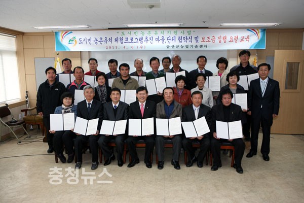 금산군(군수 박동철)이 2011년도 농림수산식품부 도시민농촌유치 지원사업추진 종합평가에서 전국 1위로 선정돼 2012년 예산 1천만원 인센티브도 받았다.