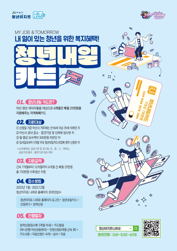 [충청뉴스 박동혁 기자] 충남 아산시는 관내 중소·중견기업에 재직 중인 청년 근로자를 대상으로 ‘2023년도 청년내일카드’ 참여 신청자를 모집한다고 3일 밝혔다.