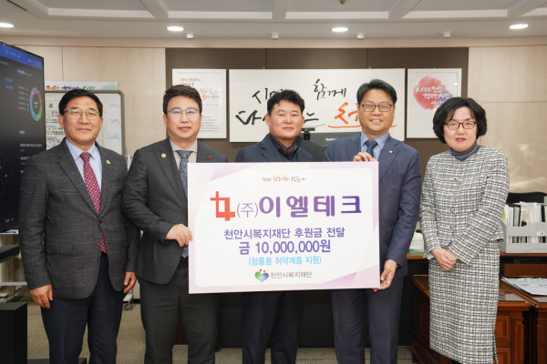 [충청뉴스 박동혁 기자] 충남 천안시는 3일 ㈜이엘테크가 청룡동 취약가구 지원을 위해 1,000만원을 전달했다고 밝혔다.