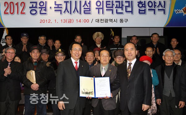 대전 동구(구청장 한현택)는 13일 대한노인회 동구지회에서 공원녹지시설 위탁관리 협약식을 개최했다.