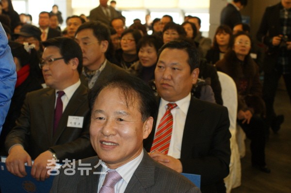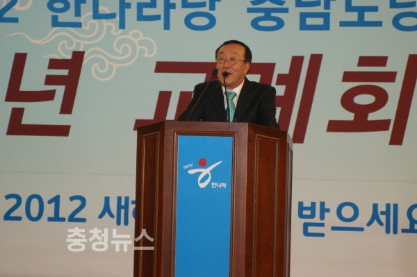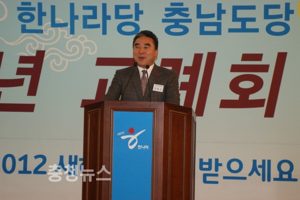 이어 박성효 前 최고위원은 “박근혜가 충청도를 어느 지역보다 사랑하고, 충청도민도 어느 지역보다 박근혜를 사랑한다”며 “금년은 용띠 해이다. 김호연위원장이 호연지기를 키워서 4.11총선에서 용의 그림에 눈을 그려넣는 화룡점정을 하고, 12월에 무궁화 동산에서 여의주 물고 용이 승천할 수 있도록 다같이 노력하자”고 의미심장한 발언과 함께 도종완 시인의 ‘담쟁이’라는 시를 읊었다.