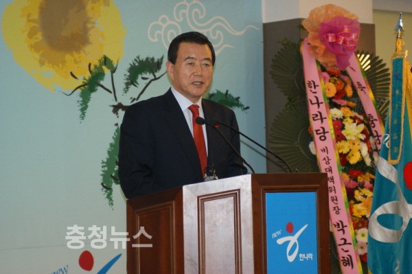 축사에 나선 박근혜 위원장은 “올해는 충남에 새로운 기회의 문이 열리는 중요한 해이다. 오는 7.1일 역사적인 세종시가 공식 출범하고 과학벨트 조성 사업도 본격 추진된다”며 “이사업들 모두 한나라당이 약속드렸던 사업들이다. 중간에 우여곡절을 겪었지만 그 약속이 실천되는 뜻깊은 순간을 맞고 있다”고 말했다.