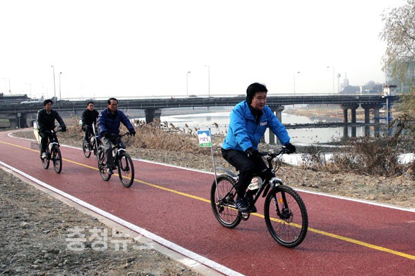▲ 정용기 청장이 자전거 현장행정을 하고 있다.