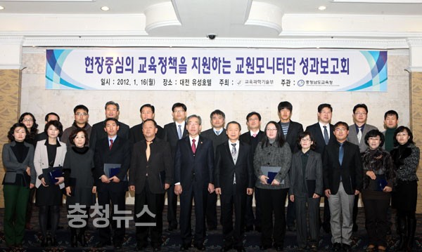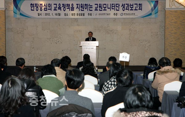 충남교육청(교육감 김종성)은 16일 오전 2011년 현장중심의 교육정책 추진을 위한 '교육정책 교원모니터단 성과보고회'를 이상진 교과부 차관을 비롯한 전국 16개 시·도교육청 소속 교원모니터단 300여명과 관계자들이 참석한 가운데 유성호텔에서 실시했다.