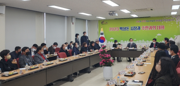 [충청뉴스 박동혁 기자] 박상돈 천안시장이 31개 읍면동을 방문 중인 가운데 13일 문성동을 찾아 10번째 시민들과의 간담회를 열고 대화에 나섰다.