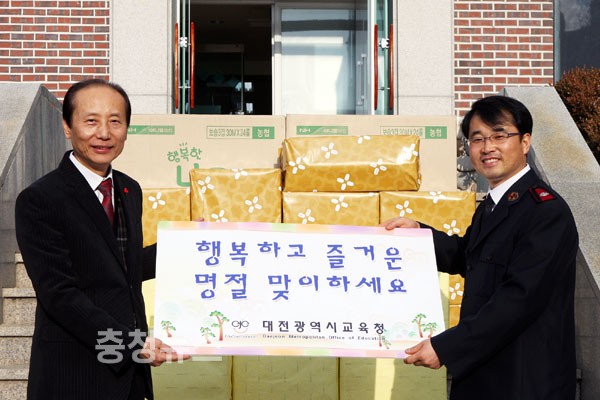 특히 이번 명절에는 대전시교육청이 보건복지부 주관 ‘제3회 대한민국 휴먼대상’ 국무총리상 수상에 따른 상금으로 받은 300만원 전액을 천양원 등 아동양육 5개 시설 위문품 전달에 각각 사용해 더욱 훈훈한 감동을 더해줬다.