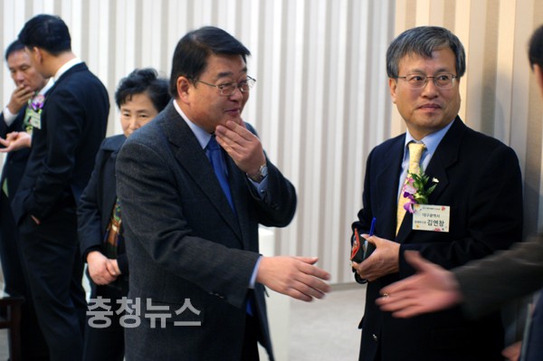 또 박성효 前 대전시장도 이 자리에 참석해 기관장들과 환담을 나누고, 행정고시 동기인 홍석우 지식경제부장관과 인사를 나눴다.