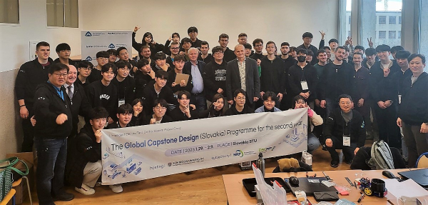 슬로박 공대 15명 포함 총 55명은 혼합팀을 구성해 지난 1월 지능형전장제어기술을 활용한 제품 과제 도출을 위해 온라인에서 시제품 개발 계획을 협의하고 공동 설계를 거쳐 부품을 제작했다. 이어 슬로바키아 현지에서 그동안 제작한 부품을 조립하고 최종 작업을 거쳐 시제품을 완성했다.