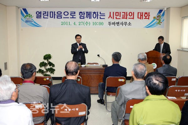 이기원 계룡시장은 "서민적·친근감을 골격으로 하는 친서민적 대화의 장을 마련해 생생한 시민들의 진솔한 목소리를 청취하고 시정에 적극 반영해 시정 발전을 도모하겠다"고 밝혔다.