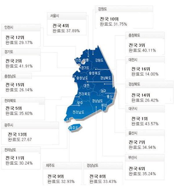 충남은 26.14%로 15위…대전은 전국 평균 35.16% 비해 21% 격차