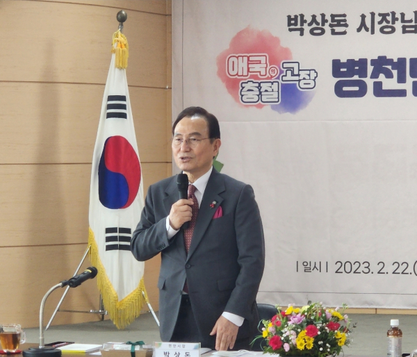 박상돈 시장은 22일 병천면을 찾아 홍성현 충남도의회 부의장, 류제국 천안시의원을 비롯해 병천면 주민 대표와 시 관계자 등 60여 명이 참석한 24번째 시민들과의 간담회에서 이같이 밝히며 폐기물 시설 허가에 대해 ”산업통상자원부에 거부 의사를 분명히 밝힐 것“이라고 강조했다.