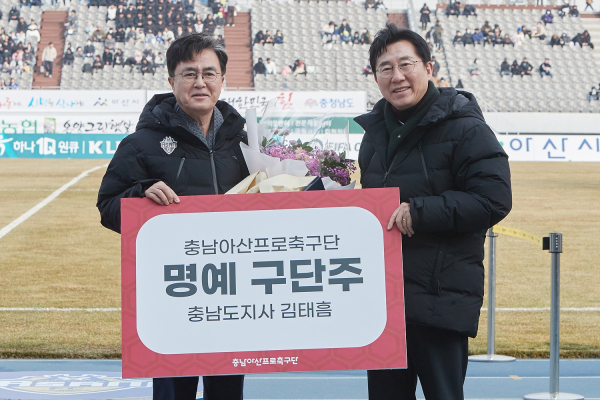 [충청뉴스 박동혁 기자] 김태흠 충남도지사가 충남아산프로축구단(충남아산FC) 명예구단주로 추대됐다.