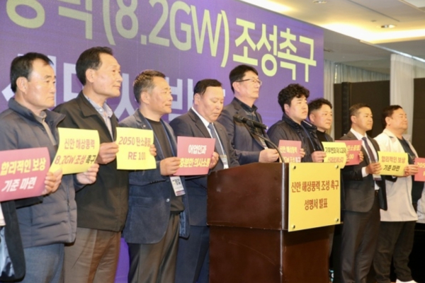 신안군어업인연합회는 (사)한국수산업경영인연합회 신안군연합회, 새어민회, 신안군어촌계연합회 등 10개 단체로 구성된 어업인 대표로 “정부의 각종 규제로 인해 해상풍력 사업의 불확실성이 커져 어업인이 어업활동에 투자를 해야할지 결정하기 어려워졌다”며 '정부의 해상풍력 조성 촉구', '해상풍력과 수산업 공존방안 및 합리적인 보상방안 수립 요구' 등의 내용으로 발표하였다.