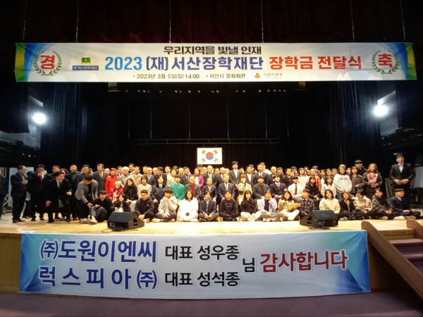 [충청뉴스 김정식 기자] (재)서산장학재단(이사장 조규선)은 “5일 서산시문화회관에서 ‘2023년도 우리지역을 빛낼 인재 장학금 전달식’을 개최하고, 중·고등학생 53명과 대학생 71명 등 총 124명에게 1억 3,300만 원의 장학금을 전달했다”고 밝혔다.