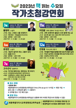 [충청뉴스 최형순 기자] 세종시교육청평생교육학습관이 저명한 작가를 초청해 ‘책 읽는 수요일 특강’을 연다.