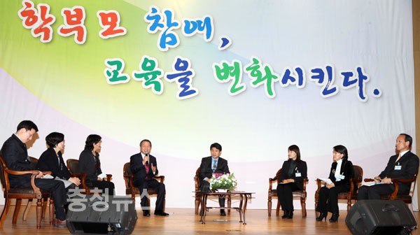 이주호 교과부 장관은 지난해 교육정책 과제 중에서 잘 이행된 2개 과제와 그렇지 않은 2개 과제를 가지고 강사 중심의 일방적인 특강이 아닌 '토크 교육콘서트' 형식으로 편안하고 부드러운 분위기에서 학부모들과 교육정책에 대한 이해의 시간을 가졌다.