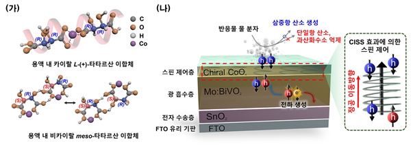 연구팀에 따르면 금속 산화물 기반의 카이랄 재료는 유기물에 비해 높은 내화학성과 우수한 전기화학적 특성을 보이며 광전극과 이종접합을 형성해 전하 분리 효율을 증진할 수 있다.