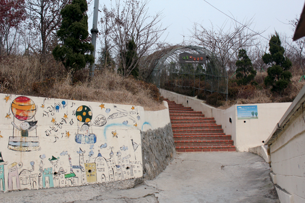 소로였다는 할머니의 말처럼 길이 꼬불꼬불 이어진다. 골목길에서 나오니 멀찍이 벽화가 보인다. 2007년 문화관광부 산하 공공미술추진위에서 실시한 ‘소외지역 개선을 위한 공모사업’에 선정된 대동은 지역미술인 30여 명이 참여해 벽화를 그리고 조형물을 설치하는 미술프로그램이 진행됐다. 그려진 지 좀 오래돼서일까? 벽에 그려진 울타리 색이 바랬다. 벽화를 보며 골목으로 들어서자 아까와는 달리 깔끔하게 정돈된 골목길이 나온다. 파스텔색조 벽화 때문인지 산뜻하다.